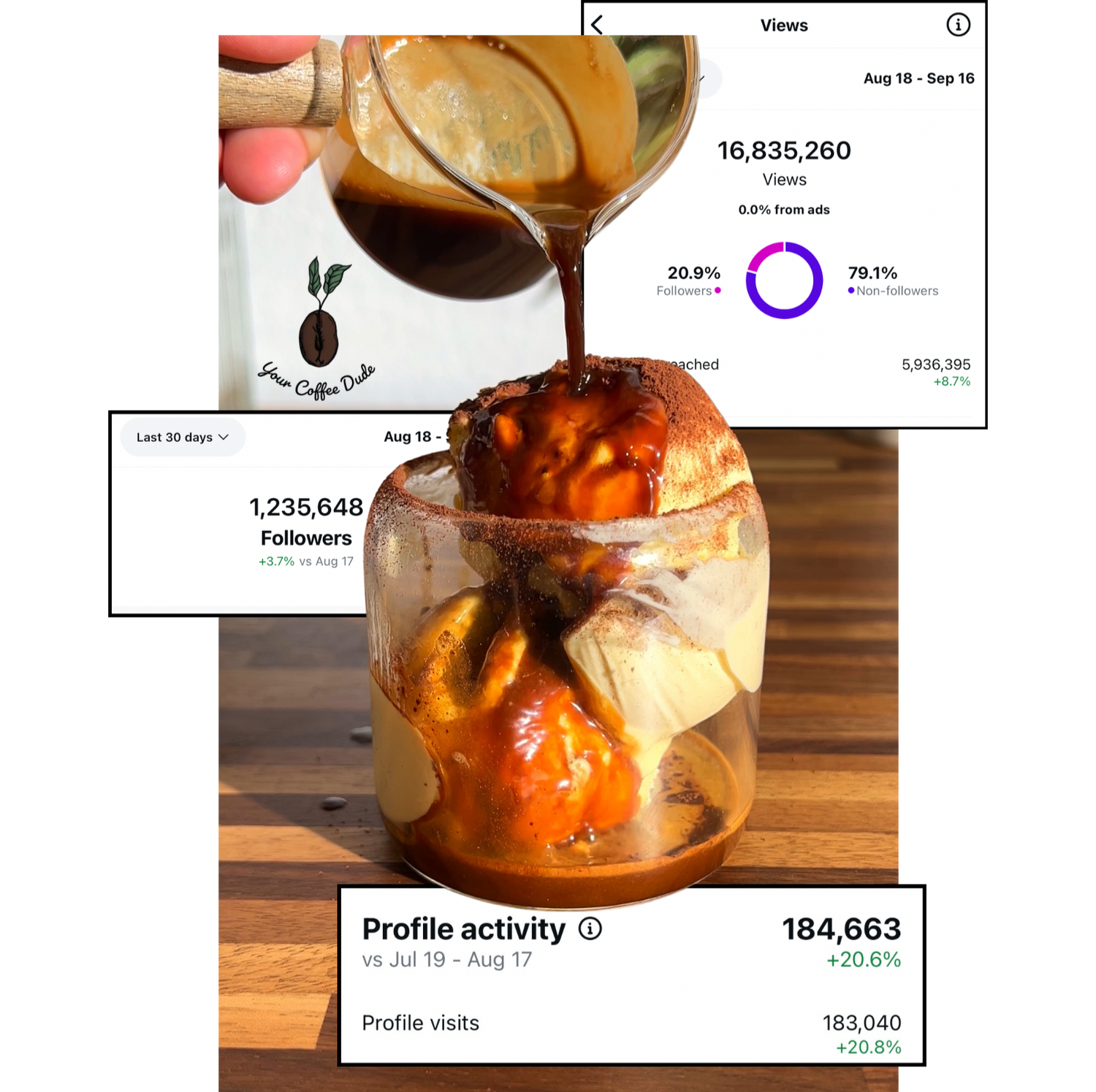 We scaled our own brand from 0 to 1.2M followers and 10M+ monthly views. Now we're using the same strategy to help brands like yours to do the same.
